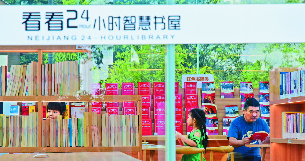 ◀市民在四川内江市东兴区小青龙河湿地公园的“看看24小时智慧书屋”阅读。智慧书屋通过提供一站式文化生活服务,打造智能、便捷、高效、健康的文化生活新空间。唐明润摄(中经视觉)