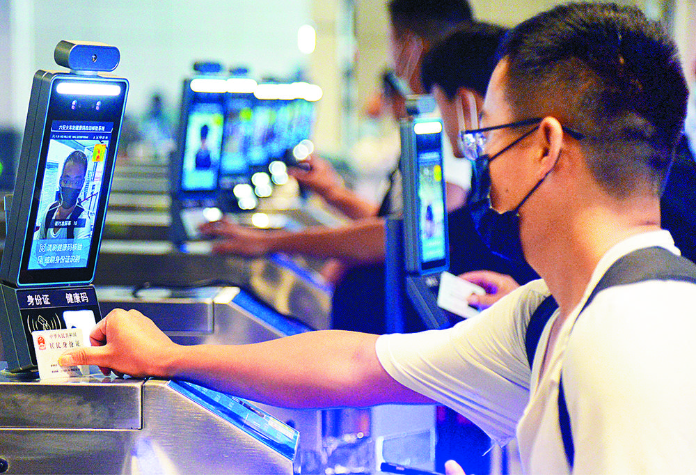 ▼安徽六安火车站,旅客利用健康码自动核验系统验码出站。信息化、智能化技术手段的应用,大幅提升了交通出行的安全感、体验感和通行速度。 田凯平摄(中经视觉)