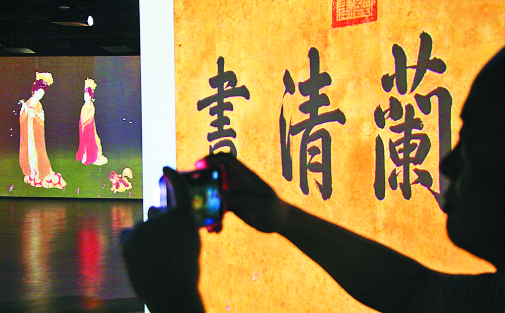 ▼观众在山东泰安市泰山区国际文化大数据产业城体验“数字化”非遗文化。数字化技术让壁画、雕刻等尘封的文化遗产变得鲜活动人,成为“可观可感”的文化景观。张滨滨摄(中经视觉)