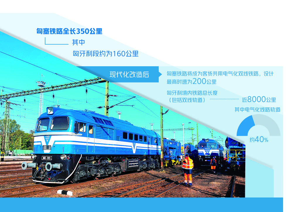匈塞铁路是从匈牙利首都布达佩斯至塞尔维亚首都贝尔格莱德的铁路,全长350公里,其中匈牙利段约为160公里。经现代化改造之后,匈塞铁路将成为客货共用电气化双线铁路,设计最高时速为200公里,布达佩斯和贝尔格莱德两地之间的旅程将大大缩减。目前,塞尔维亚段贝尔格莱德至旧帕佐瓦34.5公里左线已顺利建成通车,匈牙利段南段进入实施阶段,匈牙利段北段也已启动并进行招标。