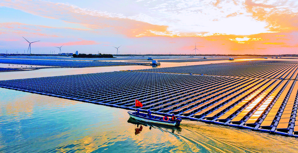 10月19日,国家电网彩虹服务队队员在山东德州丁庄华能光伏电站开展日常维护,排查涉电安全隐患,确保迎峰度冬用电稳定。丁庄华能光伏电站是全球单体最大水面漂浮式光伏电站,一期100兆瓦项目近期并网发电。该项目全部建成后,每年可提供清洁能源4.2亿千瓦时。宋伟龙摄(中经视觉)