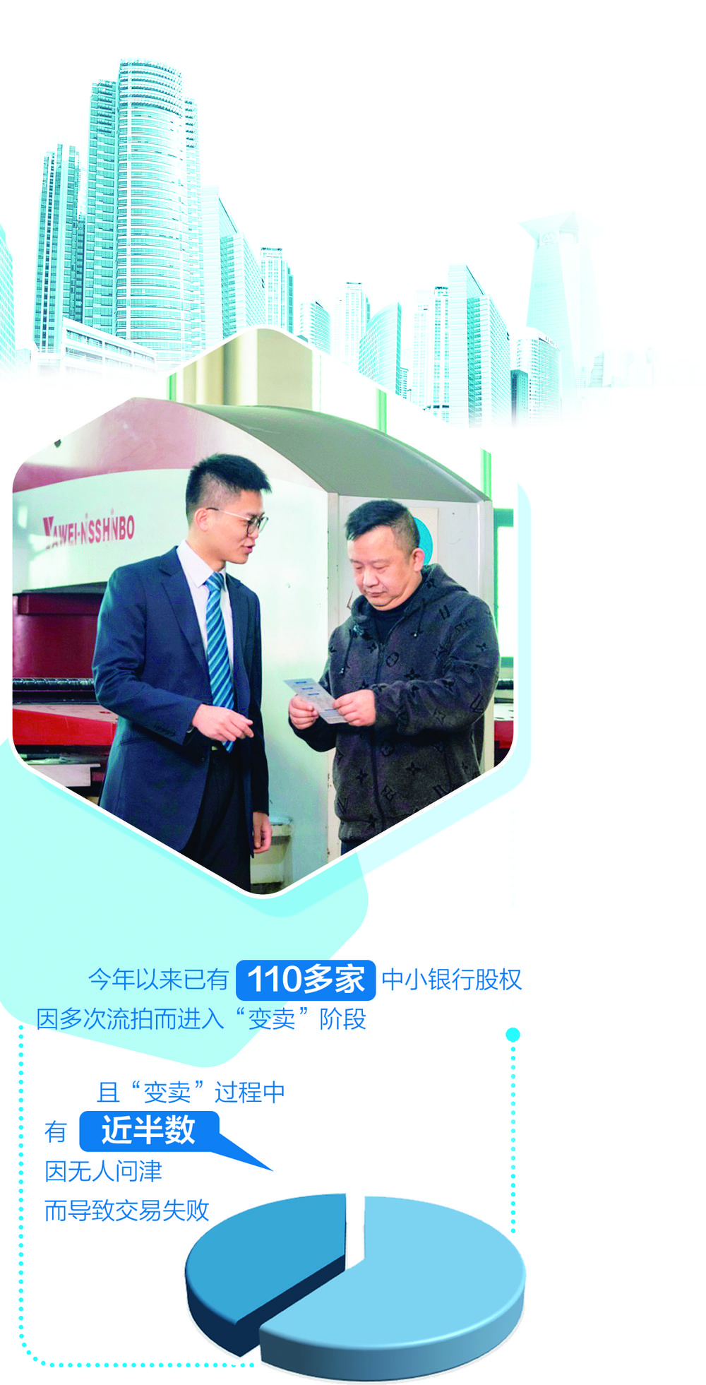 经营业绩指标下滑直接影响到该行的资产质量,也让市场资金望而却步。据市场机构统计,今年以来已有110多家中小银行股权因多次流拍而进入“变卖”阶段,且“变卖”过程中有近半数因无人问津而导致交易失败。