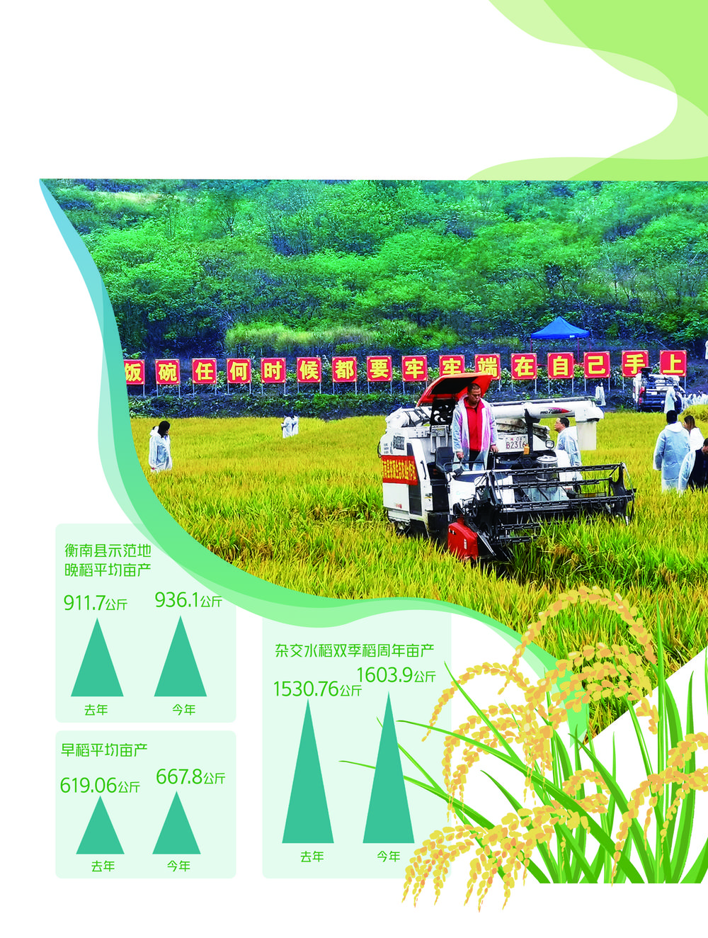按农业农村部有关规定,在同一个生态区,必须连续两年达到目标产量才叫攻关成功。去年,衡南示范基地双季稻周年亩产达1530.76公斤,今年,在同一基地,早稻增产近50公斤,晚稻增产20余公斤,使得周年亩产创造了新纪录。
