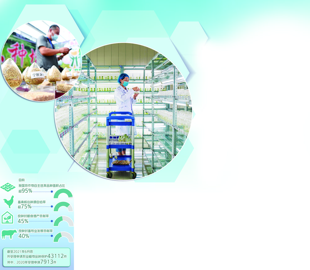 岳麓种业峰会日前发布的《中国种业年度十大进程事件(2020.10—2021.9)》报告显示,目前我国农作物自主选育品种面积占比超过95%,畜禽核心种源自给率超过75%。但是,种业发展基础仍不牢固,良种对粮食增产的贡献率为45%、对畜牧业发展贡献率为40%,与发达国家相比还有较大空间。