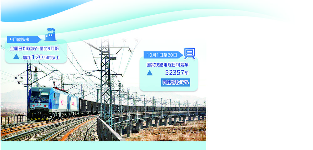 10月1日至20日,国家铁路电煤日均装车52357车,同比增长17%。截至10月20日,全国363家铁路直供电厂存煤3504万吨,较9月底增长18%,平均可耗天数达16.6天,较9月底增长2.6天。
