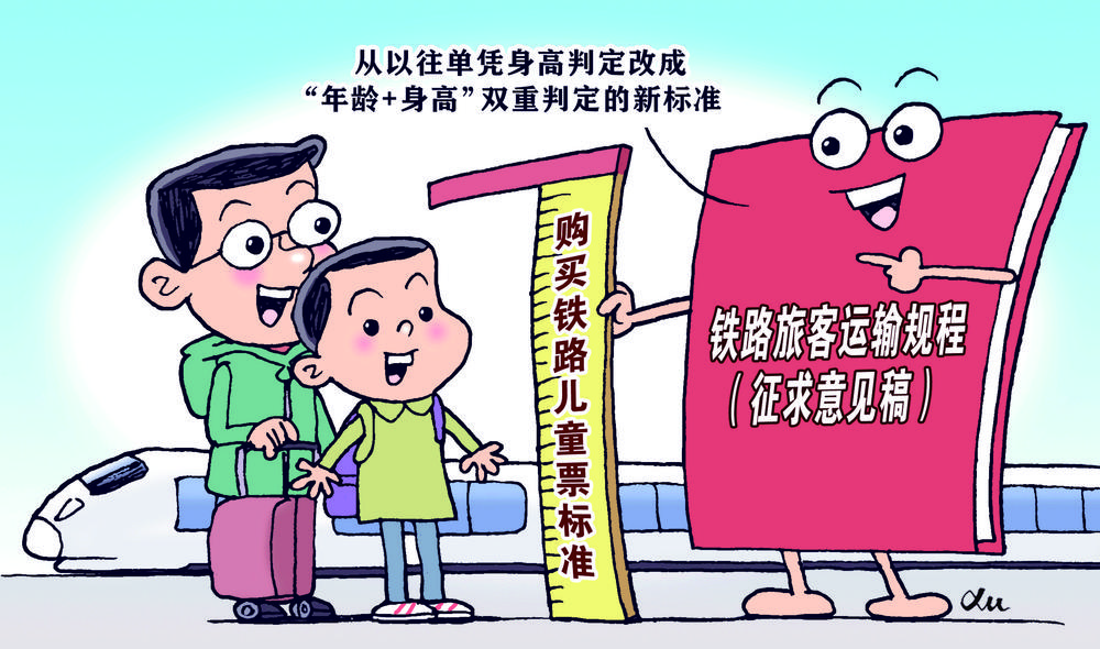 国家铁路局日前发布《铁路旅客运输规程(征求意见稿)》,拟将铁路儿童票认定标准从以往单凭身高判定改为“年龄+身高”双重判定。实行车票实名制的,年满6周岁且未满14周岁的儿童可以购买儿童优惠票;年满14周岁应买全价票。每一名持票成年人旅客可免费携带一名未满6周岁且不单独占用席位的儿童乘车;未实行车票实名制的,身高达到1.2米且不足1.5米的儿童可以购买儿童优惠票;身高达到1.5米的儿童,应当购买全价票。每一名持票成年人旅客可免费携带一名身高未达到1.2米且不单独占用席位的儿童乘车;超过一名儿童时,超过人数应当购买儿童优惠票。该判定标准细分了年龄、身高、人数等不同情况下的优惠政策,方便乘客准确理解,也有利于铁路部门执行。