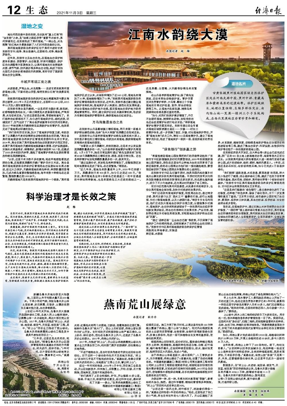 “通过‘退耕还湿’‘企业生态迁建’等政策,不仅保障了湿地保护工作的顺利推进,还彻底解决了农民和企业的后顾之忧。”张掖市甘州区黑河湿地国家级自然保护区管理局副局长李海春说,实施退耕还湿、水源涵