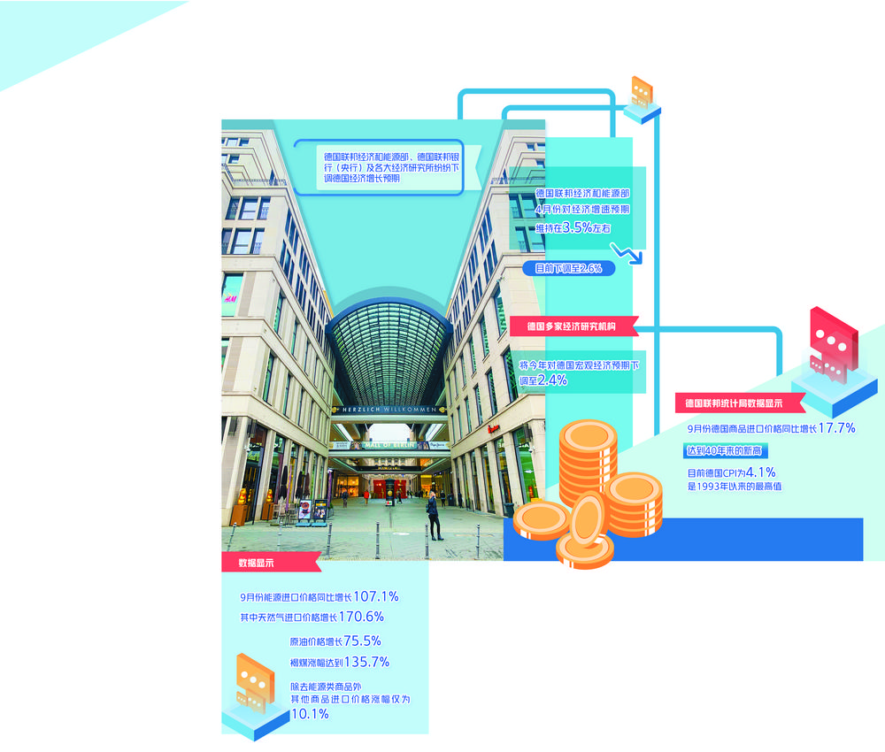 近期德国联邦统计局的数据显示,9月份德国商品进口价格同比增长17.7%,达到40年来的新高。特别是木材、钢铁、天然气和石油等商品的进口价格飞速上涨。专家分析普遍认为,这样的价格上涨将迅速传导至普通消费者。目前德国CPI为4.1%,是1993年以来的最高值。分析认为,在接下来的几个月里德国物价将继续上升。数据显示,此轮价格上涨的主要推手是能源进口价格。9月份能源进口价格同比增长107.1%,其中天然气进口价格增长了170.6%,原油价格增长75.5%,褐煤涨幅达到135.7%。除去能源类商品外,其他商品进口价格涨幅仅为10.1%。德国经济研究机构普遍认为,当前能源价格高位运行的态势短期内不会迅速改变。
