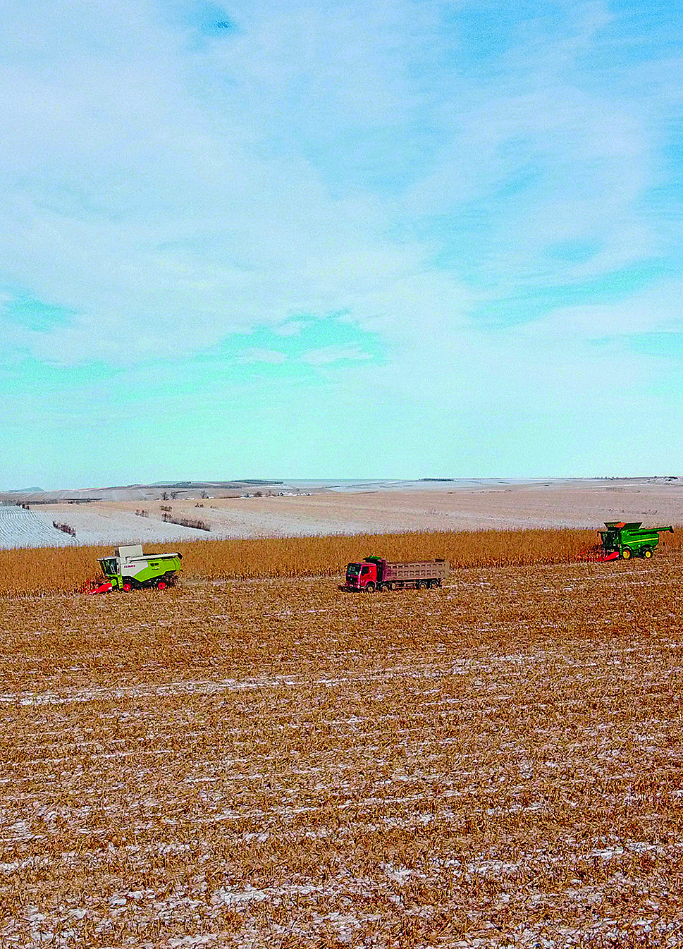 11月14日,位于内蒙古自治区呼伦贝尔市扎兰屯市的呼伦贝尔农垦大河湾农牧场组织机械化抢收玉米。入冬以来,当地国有农场、农民专业合作社积极抢抓农时进行秋粮收割,助力增产增收。田林鑫摄(中经视觉)