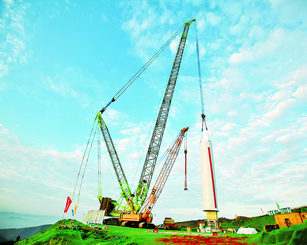 近日,中国铁建电气化局一公司承建的泰胜风能嵩县50MW分散式风电项目首台风机顺利吊装。近年来,我国工程建设行业聚焦绿色转型,大力进军清洁能源项目建设领域,积极组织和推进产业技术创新,实现了绿色、环保施工,有力助推了行业低碳高质量发展。 杨学伟摄(中经视觉)