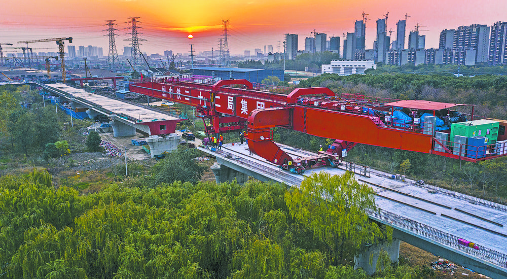 11月18日,由中铁二十二局参建的南沿江城际铁路江阴至张家港段新型箱梁架设全部完工,标志着国内首条大规模采用40米千吨箱梁的高铁建设取得重要进展。