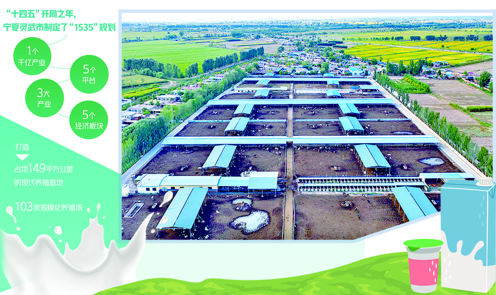 “十四五”开局之年,灵武制定了“1535”规划,即打造1个千亿产业、5个平台、3大产业和5个经济板块的经济强市。这个千亿产业就是高端奶业。灵武建设了占地149平方公里的现代养殖基地,103家规模化养殖场,累计完成社会投资超过25亿元。昔日戈壁滩,正在慢慢成为名副其实的高端奶业之乡。