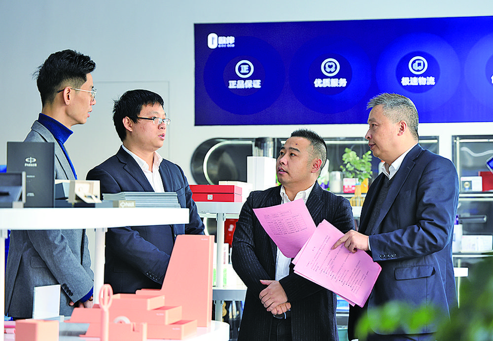 11月19日,江西省南昌市西湖区金融服务中心工作人员来到江西欧伴科技有限公司,为企业介绍专属科技信贷产品。近年来,南昌市西湖区切实发挥政银企工作合力,为辖区民营企业融资难、融资贵问题分忧解困。马 悦摄(中经视觉)