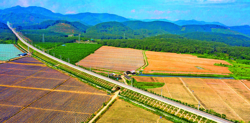 11月24日,专业技术人员对中老铁路国内段进行的测试结果显示,全程语音通信质量平稳,三大运营商用户手机上网速率基本达标,标志着中老铁路国内段实现移动网络全覆盖。图为中老铁路云南省西双版纳景洪段。焦宏涛摄(中经视觉)