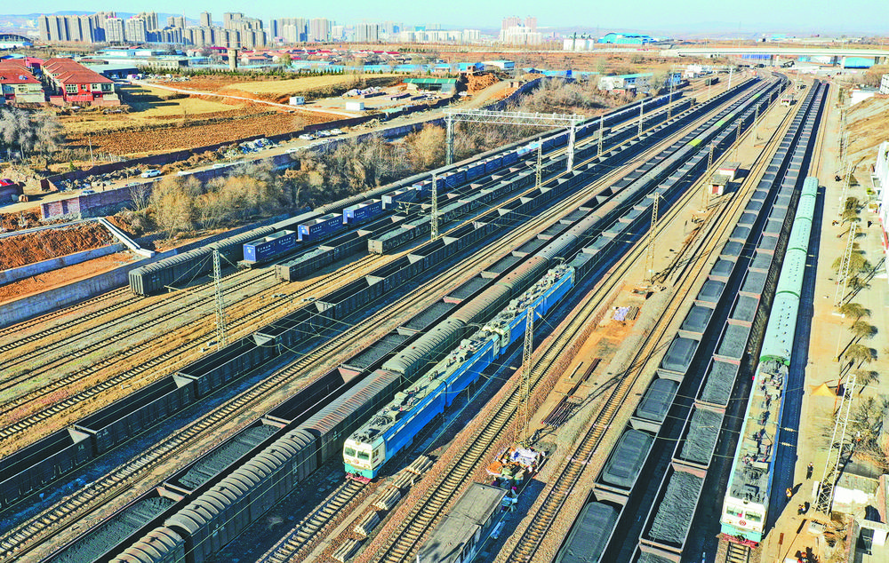 11月23日,山西晋城,一列列装载煤炭的货物列车在太焦线晋城北站等待发车。入冬以来,全国铁路煤炭发送持续保持较高水平。铁路部门充分发挥“晋煤外运”通道优势,优化沿线车站技术作业组织,提升煤炭装卸、车辆编组效率,全力保障电煤运输。