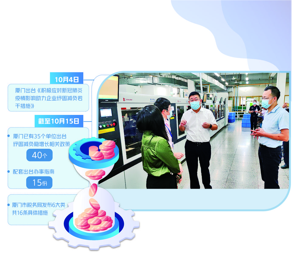 这只是厦门各区(开发区)、行业主管部门解决企业实际困难、助力企业纾困减负促发展的一个缩影。截至10月15日,厦门已有35个单位出台40个纾困减负稳增长相关政策,配套出台15份办事指南,通过政策的差异化设计,精准帮扶各行各业,力促企业多接订单、增产增效,进一步激发市场主体活力。