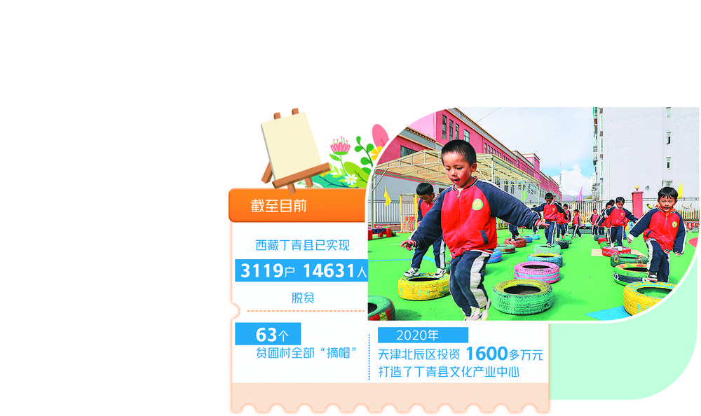 为拓宽丁青文化产业发展空间,2020年,天津北辰区投资1600多万元,打造了丁青县文化产业中心,将丁青文艺、手工艺等文化要素聚集成链集中展示。