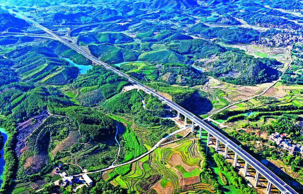11月25日拍摄的广西桂林至柳城高速公路融安段。该高速公路起于桂林市临桂区四塘镇大约村附近,终点位于柳州市融安县潭头乡西塘村附近,主线全长96公里,总投资129亿元,计划于12月上旬正式通车。目前,项目建设者正在做通车前设备调试工作。黎寒池摄(中经视觉)