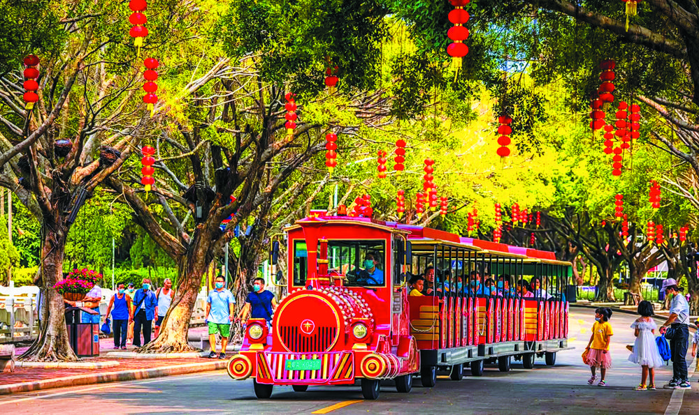 ▲游客乘坐观光车在广州市南沙湾景区游览。近年来,南沙区围绕建设国际旅游目的地,着力打造文化旅游精品,推进旅游产业转型升级。 刘胜光摄(中经视觉)