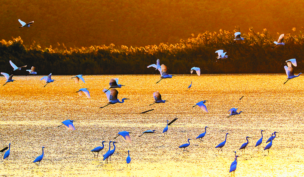 ▼候鸟在广州市南沙湿地栖息过冬。近年来,南沙区开展多项湿地整治和修复工程,湿地环境得到改善,栖息的野生保护鸟种、数量不断增加。李夏同摄(中经视觉)