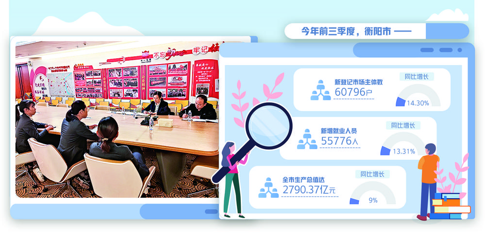 从“一件事一次办”到“跨域通办”“码上就办”,从“1.5个工作日办好工程规划许可证”到“在外地办好衡阳事”再到“马上办好”……衡阳市通过一次次的“自我革命”“全省首创”升级营商环境。高效的政府服务和持续优化的营商环境吸引众多创业者纷纷落户衡阳,带来了市场主体的持续活跃。今年前三季度,全市新登记市场主体数60796户,同比增长14.30%;新增就业人员55776人,同比增长13.31%;全市生产总值达2790.37亿元,同比增长9%。