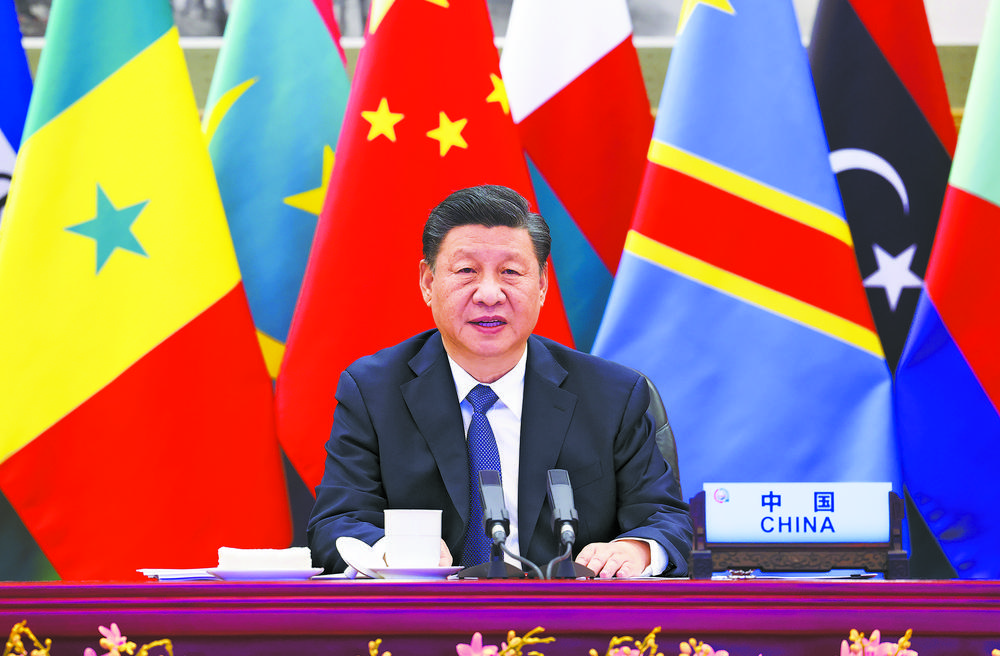 习近平发表题为《同舟共济,继往开来,携手构建新时代中非命运共同体》的主旨演讲。(演讲全文见二版)