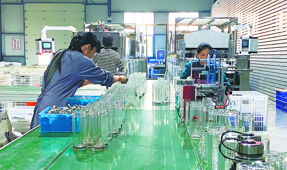 11月29日,就近务工的女工在山东省聊城市斗虎屯镇沃鑫工艺制品有限公司车间检验玻璃水杯产品。当地通过对接用工单位搭建就业平台,开展定向就业技能培训,吸纳农村妇女在家门口灵活就业,助力乡村振兴。潘玉林摄(中经视觉)