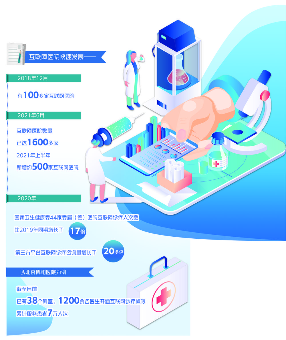 近年来,我国互联网医疗服务发展迅速。数据显示,截至今年上半年,全国互联网医院已达1600多家,今年新增约500家。随着疫情防控常态化,医疗机构积极创新医疗服务模式,从一开始提供线上平台挂号、在线查看报告等服务,到现在尝试打通“在线问诊+复诊续方+医保支付”等环节,在政策的催化下,互联网医院建设深度不断延展。