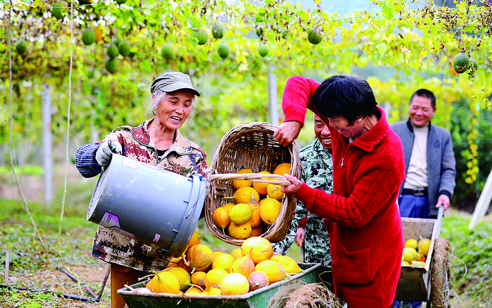 近日,江西省分宜县湖泽镇湖泽村瓜蒌种植基地,村民忙着采摘瓜蒌。近年来,江西积极引导农民因地制宜调整产业结构,培育特色产业,带动群众增收。本报记者 刘 兴摄