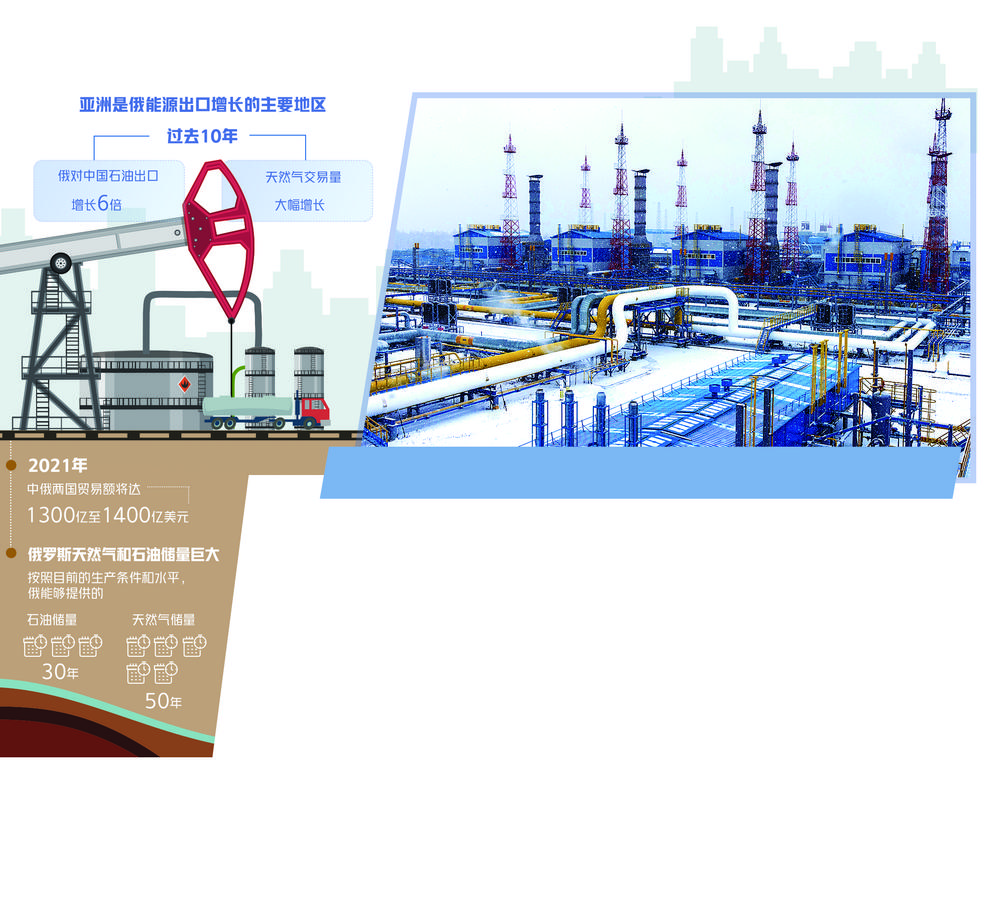 近年来,两国能源合作保持平稳增长态势。俄副总理诺瓦克在论坛期间表示,亚洲是俄能源出口增长的主要目的地。过去10年,俄对中国石油出口增长6倍,同时天然气交易量也大幅增长。俄天然气工业股份公司副总裁布尔米斯特洛娃表示,有必要增加对中国的天然气供应,或将通过“东方联盟”管道每年向中国供应500亿立方米天然气。