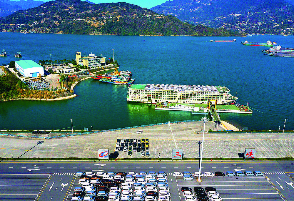 11月30日,三峡坝区湖北省秭归县银杏沱滚装码头,满载货车及货物的滚装船正在装卸作业。今年下半年以来,三峡库区水上运输企业顺应市场规律调整时段,根据需要发船,激活了滚装船水上运输市场。黄善军摄(中经视觉)