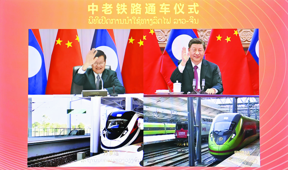 习近平同老挝人民革命党中央总书记、国家主席通伦共同出席中老铁路通车仪式