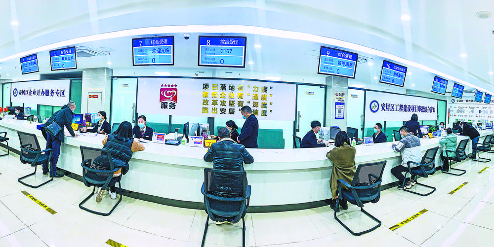 12月3日,企业在四川省遂宁市安居区行政审批局政务服务大厅办理业务。安居区不断深化行政审批制度改革,设立企业开办专区和工程建设审批综合窗口,推行工业项目容缺审批,企业开办更便捷,项目落户更高效,营商环境更优化,全力打造成渝地区投资兴业热土。
