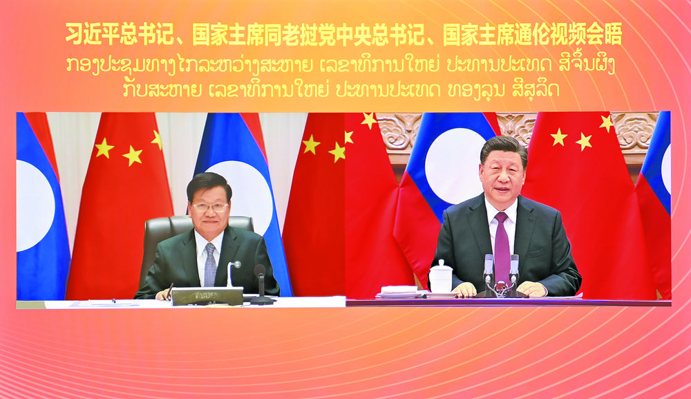 习近平同老挝人民革命党中央总书记、国家主席通伦举行视频会晤