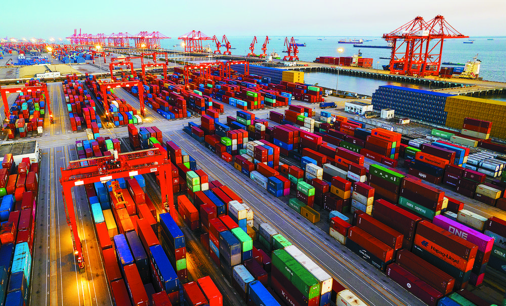 12月5日,江苏省太仓港集装箱码头集装箱吞吐作业一派繁忙景象。11月份,江苏省太仓港完成集装箱吞吐量70.7万标箱,同比增长55.8%,创单月历史最高纪录。