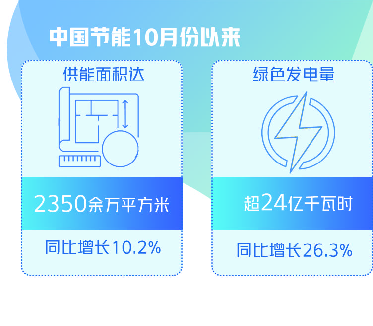 面对今冬明春保供以及多地疫情反弹的复杂形势,作为一家以节能环保为主业的中央企业,中国节能充分发挥自身优势,全力以赴扛起绿色能源保供责任。10月份以来,中国节能开足马力、挖潜增产,供能面积达2350余万平方米,同比增长10.2%,绿色发电量超24亿千瓦时,同比增长26.3%。