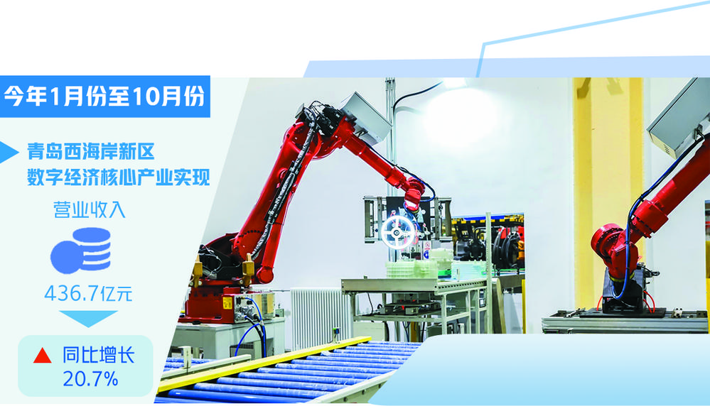 坚持以产业数字化、数字产业化为主线,青岛西海岸新区数字核心产业不断实现突破。今年1月份至10月份,青岛西海岸新区数字经济核心产业实现营业收入436.7亿元,同比增长20.7%,其中规模以上信息传输、软件和信息技术服务业企业完成营业收入39.7亿元,同比增长68.7%。