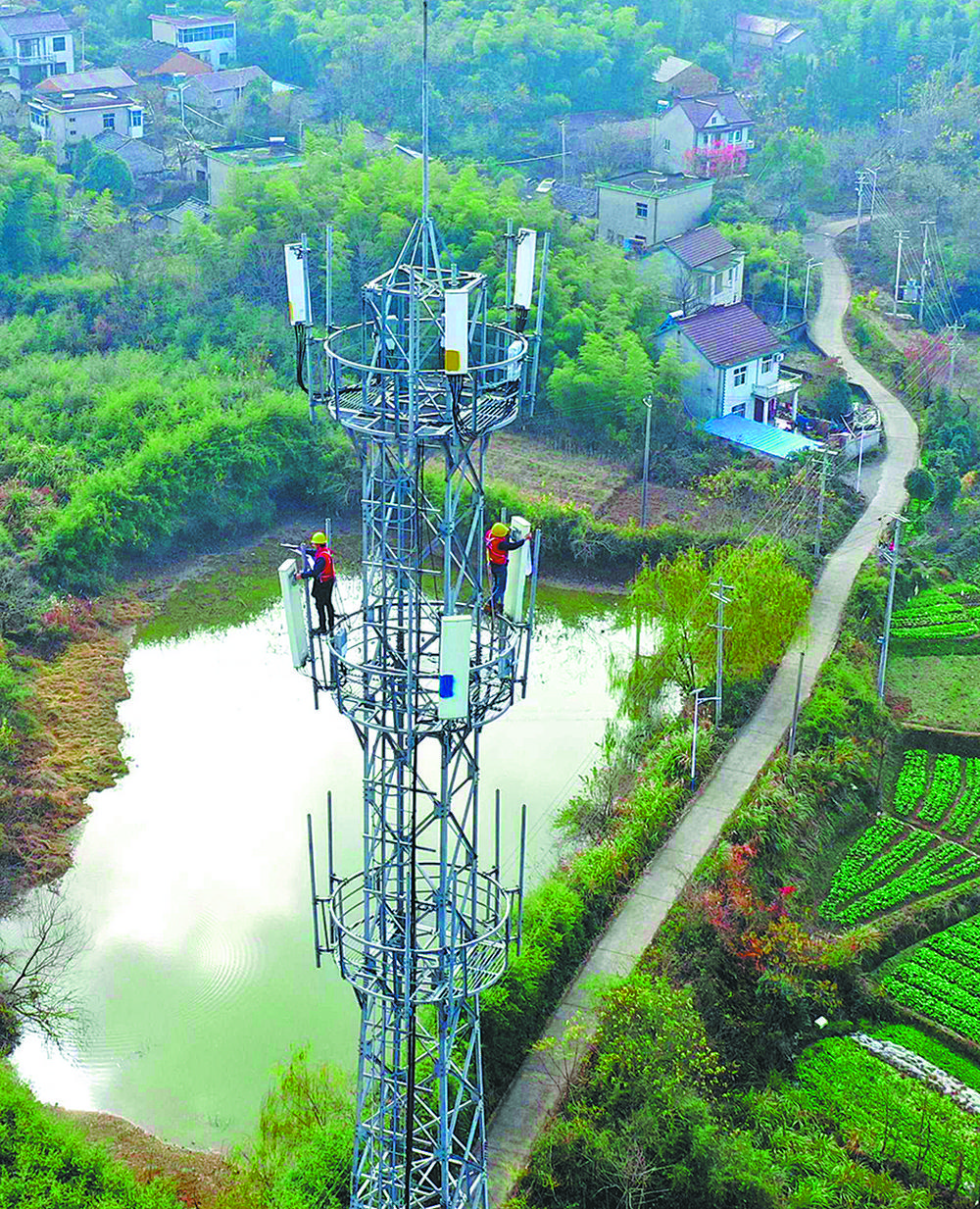 十二月十三日,安徽移动铜陵分公司网络维护人员在铜陵市义安区天门镇五峰村调测5G基站天线。截至目前,安徽移动铜陵分公司已建设5G基站超六百五十个,实现铜陵乡镇、农村热点区域5G信号全覆盖。过仕宁摄(中经视觉)