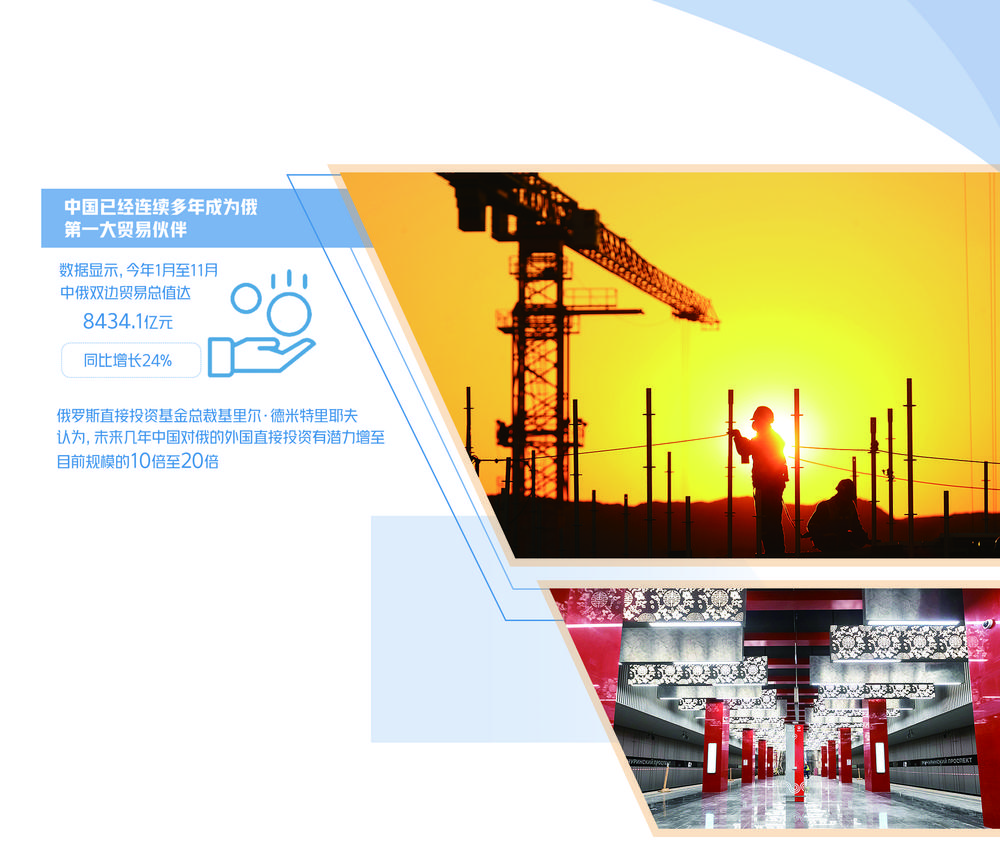 大项目取得新成果。12月7日,中国铁建参建的中国企业在欧洲首个地铁工程项目——莫斯科地铁第三换乘环线西南段项目正式开通。普京以视频方式出席通车仪式时表示“这是莫斯科地铁发展史上的重要里程碑”。在该项目中,中国企业承担包含阿米尼站、米丘林大街站、维尔纳大街站3个车站和9条盾构隧道建设任务,这也是俄罗斯首次在地铁施工领域引进中国企业。在项目建设中,中国铁建实现了中国文化、中国方案、中国技术、中国设备、中国资本集群式“走出去”,成为中俄基建领域合作的生动案例。此外,中俄两国首座跨江铁路桥同江铁路大桥8月实现铺轨贯通,莫斯科中国贸易中心“华铭园”已完成建设工作。两国大项目合作不断结出硕果。