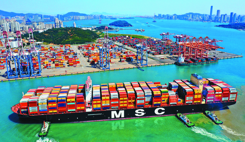 ▲俯瞰厦门市东渡港区繁忙的作业码头。作为国家四大国际航运中心之一的厦门港现有生产性泊位176个(含漳州),其中万吨级以上泊位78个,港口集装箱吞吐量达1140.53万标箱,居全国第7位、世界第14位。王协云摄(中经视觉)