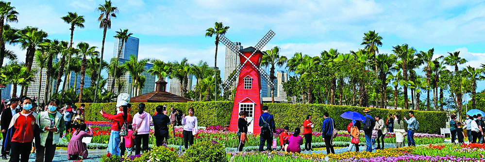 ▼在厦门市集美区园博苑,游客在赏花。园博苑的建成不仅迅速提升了岛外居住环境,还扩大了城市空间,为市民和游客提供了一个良好的休闲、旅游、健身场所。 吴君宁摄(中经视觉)