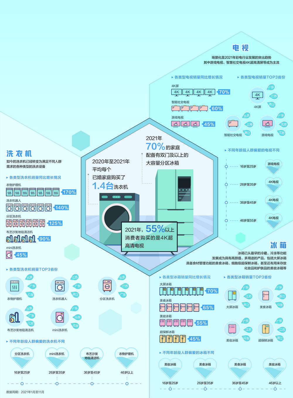 特别是在今年“双11”期间,消费者在面对“大件”消费时,表现出强烈的消费意愿,有力拉动了传统家电市场的上扬,造就了家电产业的创新升级浪潮。同时,企业通过不断创新和完善产品功能以满足越来越细化的用户需求,也体现了掌握核心技术、加快科技创新是实现产业升级的必由路径。