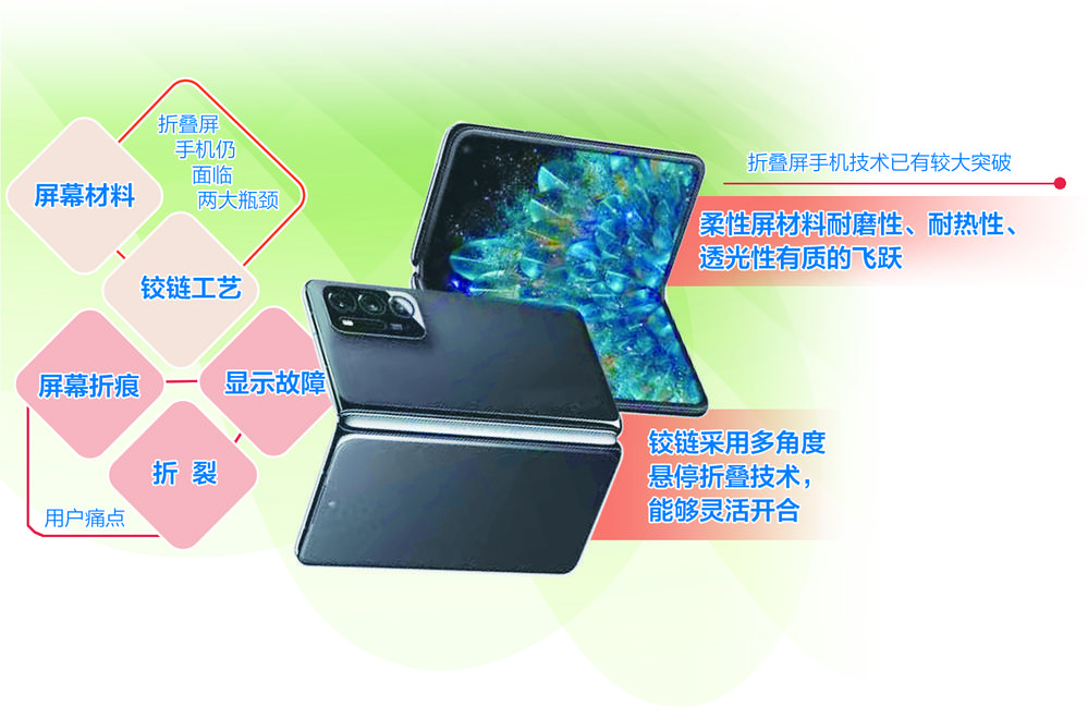 “与初期相比,如今的折叠屏手机技术已经有了较大突破。现有的折叠屏手机铰链采用的是多角度悬停折叠技术,能够灵活开合,其搭载的磁力支撑系统让设备在完全折叠时也确保安全;柔性屏的主要材料从耐磨性、耐热性到透光性,都比上代有质的飞跃,在提高屏幕可靠性的同时也能带来更好的显示效果。”王彬说。