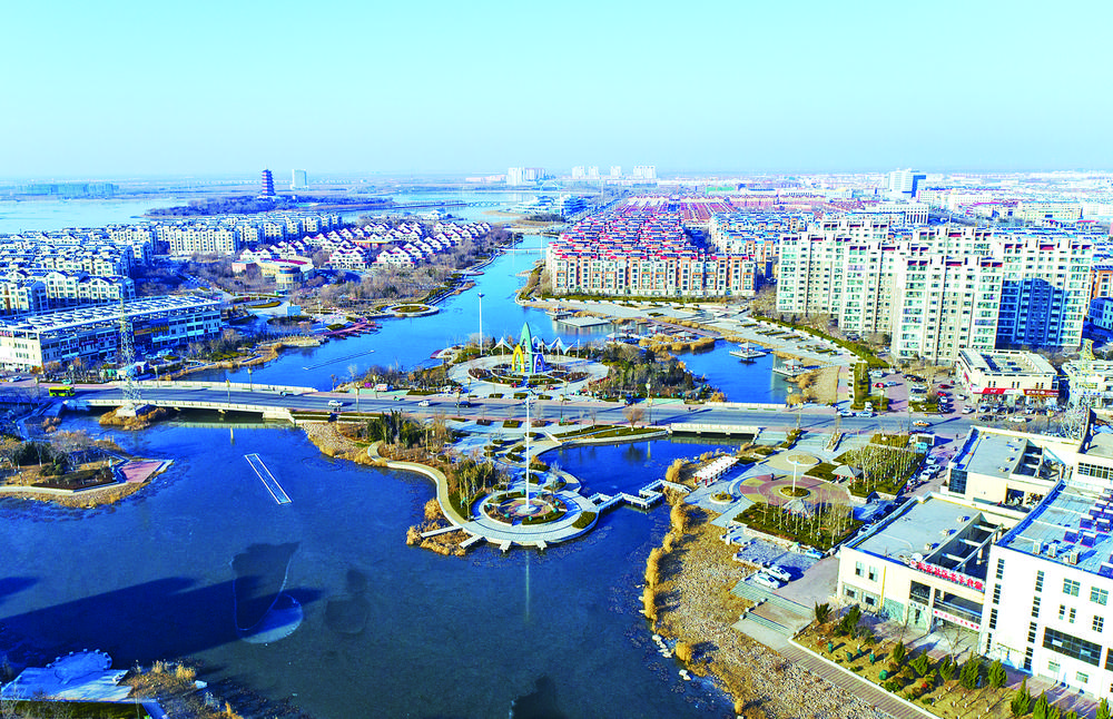 12月27日,山东省东营市河口区河安小区水系一角。受土地盐碱化程度高影响,当地绿化苗木成活率低,生态环境相对脆弱,10年前整个城区的绿化覆盖率只有20%。近年来,河口区不断加大绿化提升及管护工作,累计投入5亿多元,完成道路绿化提升83公里,建设海河公园、各城区游园17处,城区生态环境不断优化。胡云霞摄(中经视觉)