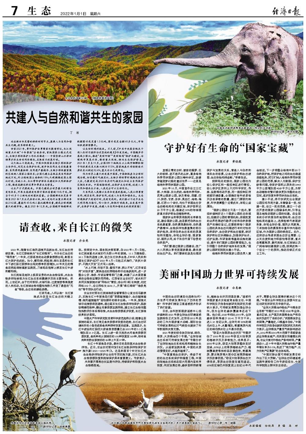 2021年10月,中国宣布设立三江源、大熊猫、东北虎豹、海南热带雨林、武夷山国家公园,涉及青海、西藏、四川、陕西、甘肃、吉林、黑龙江、海南、福建、江西10个省份,均处于我国生态安全战略格局的关键区域,保护面积达23万平方公里,涵盖近30%的陆域国家重点保护野生动植物种类。