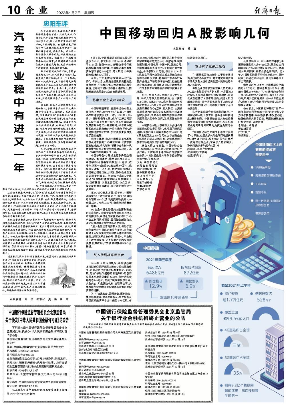 中国移动董事长、党组书记杨杰在上市仪式上表示,1997年10月23日,中国移动在香港联交所发行上市。2022年1月5日,中国移动登陆A股,成为“红筹公司回归A股主板上市第一股”,这是中国移动发展历程中的又一座里程碑,标志着中国移动成功搭建起境内外资本运作平台,为公司推进数智化转型、加快高质量发展奠定了坚实基础。