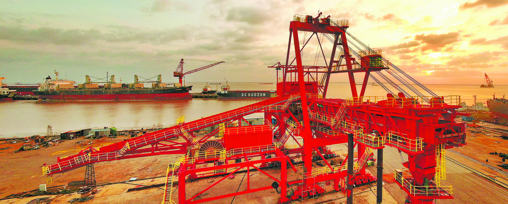 1月6日,在江苏启东华滋能源工作现场完成总装的装船机。该装船机是由江苏华滋能源工程有限公司历时10个月打造的首台装船机,处于行业先进水平,额定生产能力为4500吨/小时,最大生产能力为5400吨/小时,将被运输安装至青岛前湾码头,用于煤炭和矿石的装船工作。许丛军摄(中经视觉)