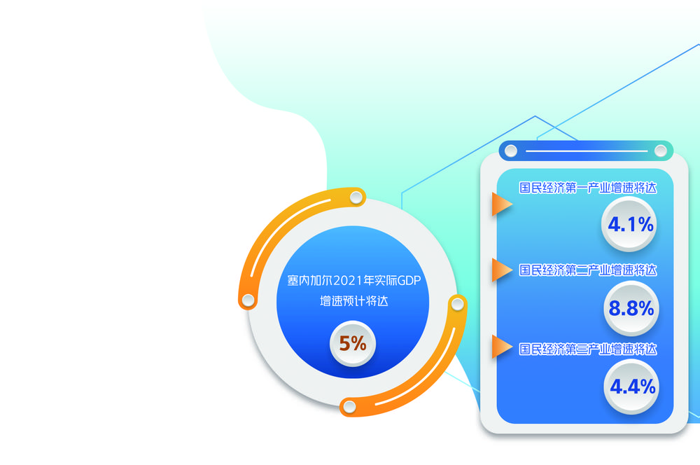 报告认为,2021年塞内加尔国民经济第一、二、三产业增速分别将达4.1%、8.8%和4.4%,而第二产业的强劲表现对全年经济增速贡献最大。另外,在全球石油和海运等价格飙升的情况下,该国通过“保价限价”等措施有效控制了通货膨胀,预估2021年通货膨胀率为2.5%。