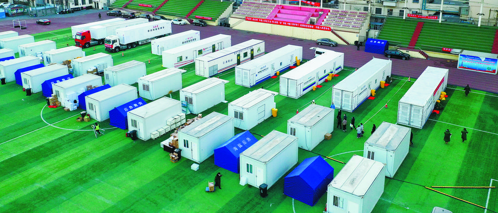 1月12日,天津启动第二轮全员核酸检测。为提升检测速度,位于北辰区、滨海新区等地的气膜方舱实验室相继投入使用,为助力天津阻击奥密克戎赢取宝贵时间。这是1月12日拍摄的位于天津市滨海新区塘沽体育场内的方舱实验室(无人机照片)。新华社发