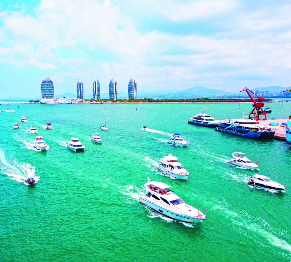 ◀游客乘坐游艇在三亚湾海面穿梭赏景。近年来,当地大力发展特色旅游业,助推经济发展。 李学仕摄(中经视觉)